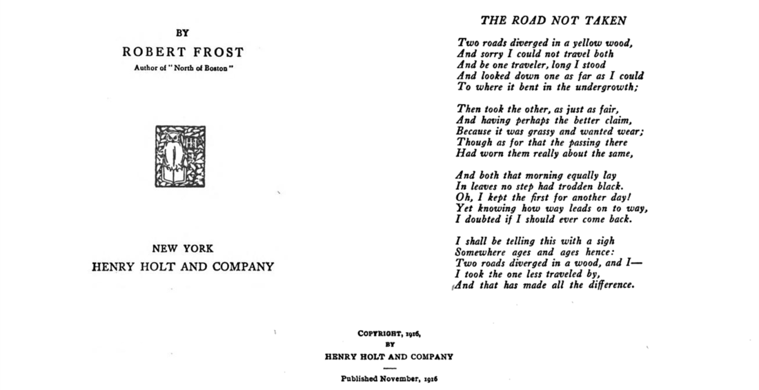 "Two roads diverged in a wood, and I –