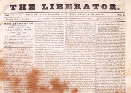- 1831: Having embraced radical, immediate abolition, Garrison launches The Liberator in Boston