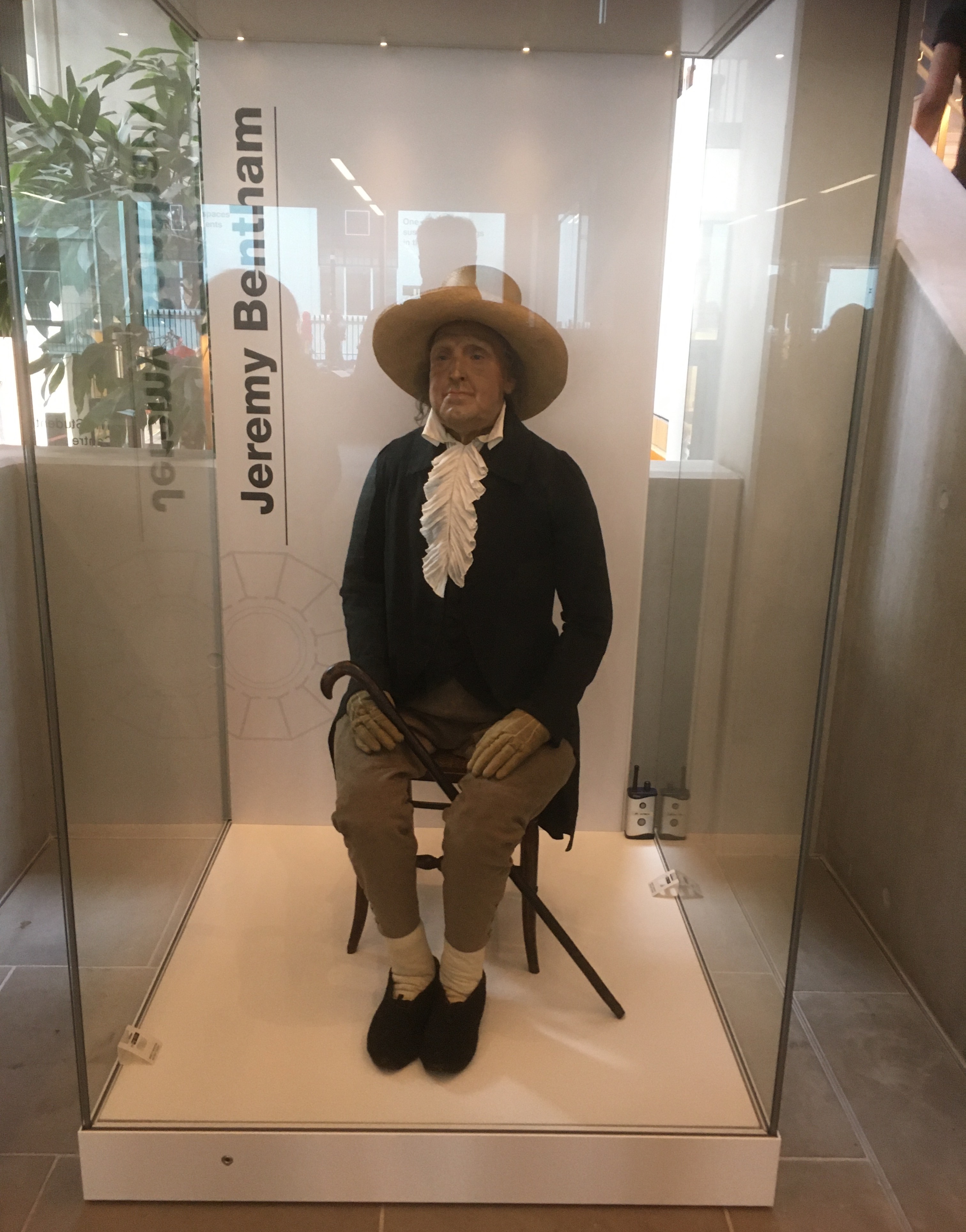 He figured that keeping his remains on like this, after his death in 1832, would be more useful than burial. His intellectual disciples might sit with his body to discuss and debate the big ideas of the day.